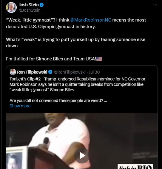 So, in a nutshell, DDA is a Democrat Super PAC masquerading as news. Its Editor-in-Chief is Ron Filipkowski. He is the individual posting these chop & cut videos on X, the latest of which was on Robinson’s past remarks. Filipkowski’s post was retweeted by NC Attorney General Josh Stein, who is running for governor against NC Lt. Governor Mark Robinson.