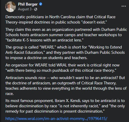 Legislation has recently been reintroduced in the NC General Assembly to combat CRT and similar ideologies from being forced on K-12 students.