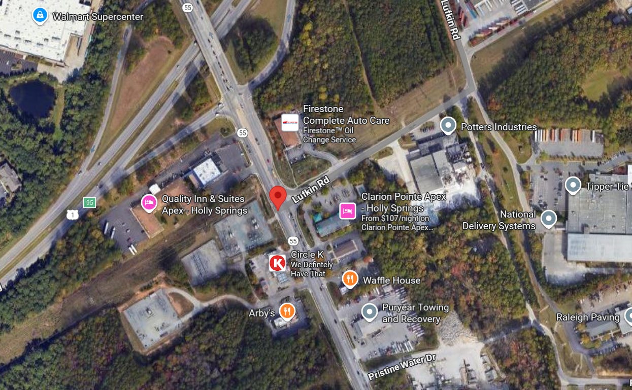 This is the area where police lost the suspect, near Lufkin Road on highway 55, a major thoroughfare between Apex and Holly Springs: