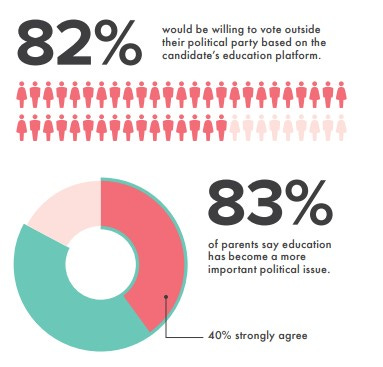 According to the report, “More than four in five parents (83%) agree that education has become a more important political issue to them than it was in the past,” and a whopping 82% are “willing to vote outside their party on the issue of education.”