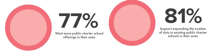 According to the report, an overwhelming percentage of the parent respondents want more choices and an even higher percentage are in favor of expanding the number of slots in existing public charter schools. Additionally, 74% agreed that if a public charter school were available in their area, they would send their child there.