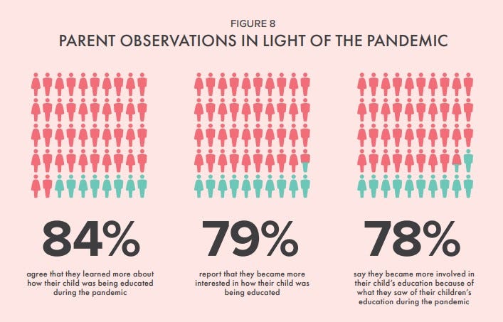 A staggering 84% of parents agreed they learned more about how their child was being educated during the pandemic and 78% said they were now more engaged because of what they saw.