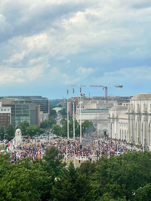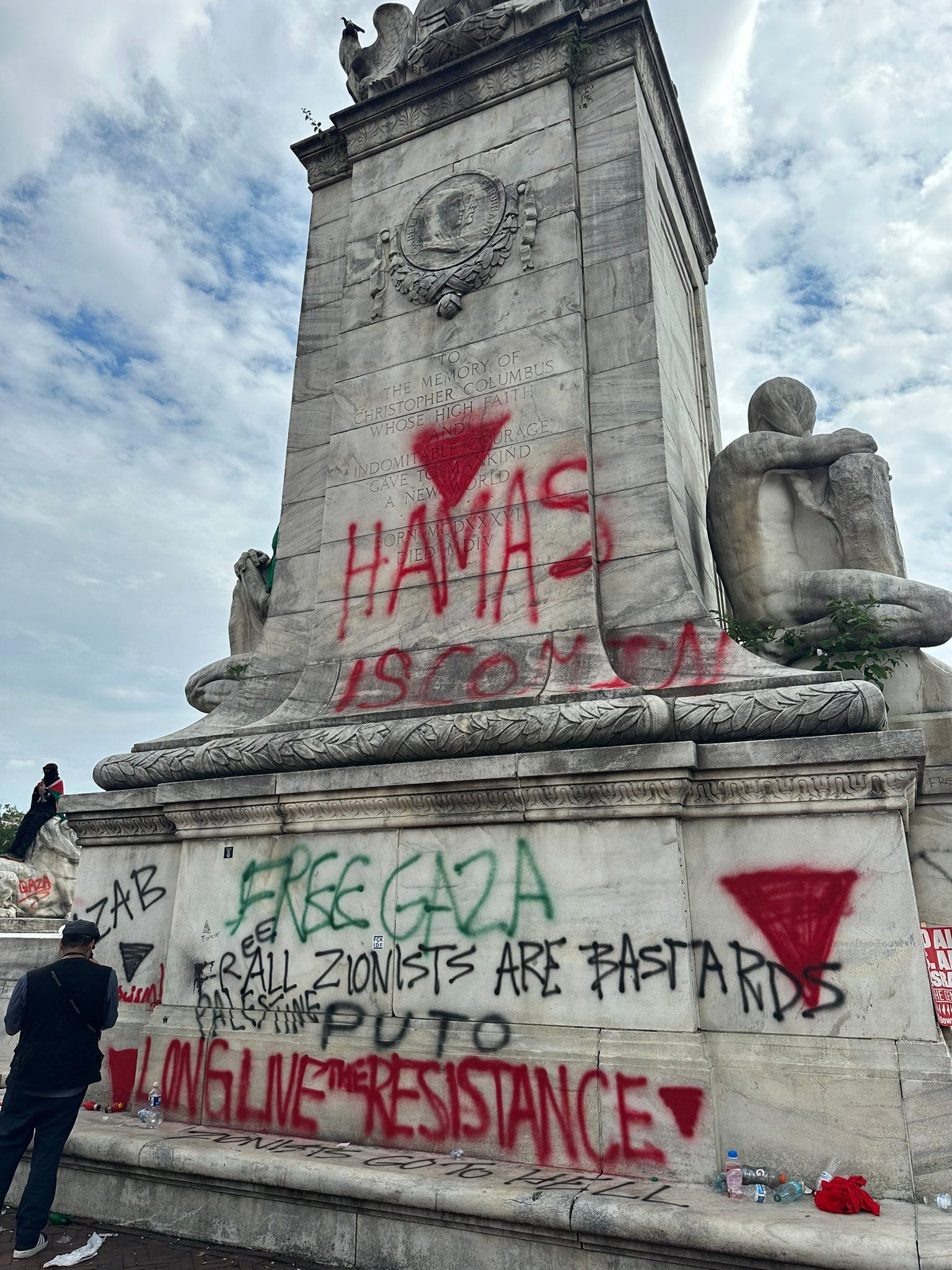 While Netanyahu spoke, pro-Hamas demonstrators filled the Union Station area of D.C., vandalizing statues, yelling anti-Israel/ anti-Netanyahu slurs, and assaulting park police.