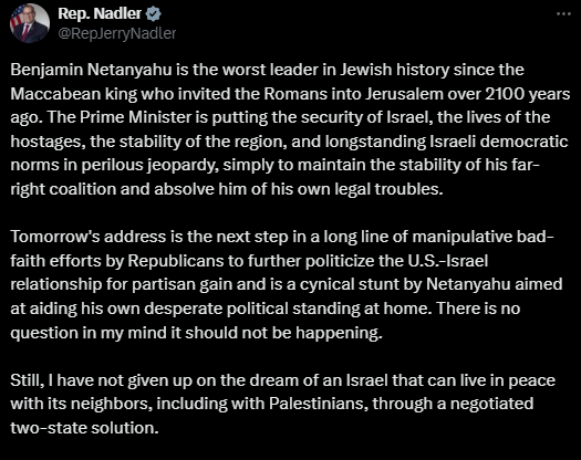 Both Pelosi and Nadler issued statements unlike any sitting member of Congress has ever given about Israel’s leader.